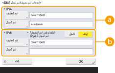 لضبط اسم المضيف واسم المجال ليكون نفس الاسم الخاص بـ IPv4، اضغط على <تشغيل> في <استخدام نفس اسم المضيف/اسم المجال لـ IPv4>. للضبط ليكون مختلفًا عن الأسماء الخاصة بـ IPv4، اضغط على<إيقاف>.