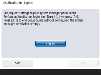 زمانبندی نمایش صفحه ورود به سیستم را انتخاب کنید. اگر <Display When Func. Selected> را انتخاب میکنید، <Functions> را فشار دهید و عملکردی که میخواهید صفحه ورود به سیستم برایش نمایش داده شود را انتخاب کنید و <OK> را فشار دهید. همچنین، موارد تنظیمات را روی صفحه <Settings/Registration> انتخاب کنید تا صفحه ورود به سیستم برایشان نمایش داده شود.