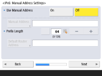 برای استفاده از آدرس دستی، <Manual Address>، <Prefix Length>، و <Default Router Address> را برای وارد کردن هر مقدار فشار دهید.