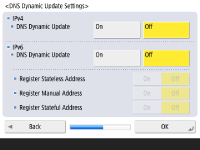 برای به روزرسانی خودکار با استفاده از "تنظیمات به روزرسانی دینامیک DNS"، باید<On> را برای <DNS Dynamic Update> فشار داده، و <OK> را فشار دهید.