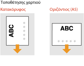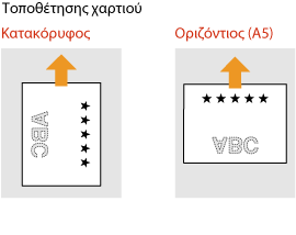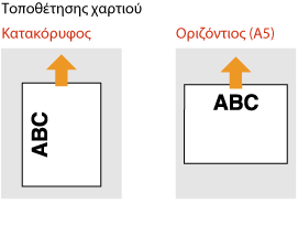 Σε αυτή την ενότητα περιγράφεται ο τρόπος τοποθέτησης προεκτυπωμένου χαρτιού κατά την εκτέλεση αντιγραφής/εκτύπωσης μονής όψης. Κατά την εκτέλεση αντιγραφή/εκτύπωσης διπλής όψης με χρήση προεκτυπωμένου χαρτιού, τοποθετήστε το χαρτί λαμβάνοντας υπόψη ότι οι ενδείξεις σε αυτή την ενότητα που αναφέρονται στην όψη του χαρτιού εννοούν το αντίθετο.