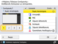 Μπορείτε να δημιουργήσετε ένα πλήκτρο συντόμευσης λειτουργιών στην οθόνη <Αρχική>. Χρησιμοποιήστε αυτό το πλήκτρο για να αποκτήσετε πρόσβαση σε μια διαφορετική λειτουργία χωρίς να επιστρέψετε στην οθόνη <Αρχική>. Για να δημιουργήσετε μια συντόμευση, συνδεθείτε με δικαιώματα διαχειριστή. Σύνδεση στη συσκευή