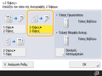Εάν η <Αυτόματη Σελιδοποίηση> έχει ρυθμιστεί σε <On>, η λειτουργία Σελιδοποίησης ρυθμίζεται αυτόματα όταν τοποθετείτε τα πρωτότυπα στον τροφοδότη. <Αυτόματη Σελιδοποίηση>