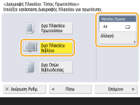 Εάν το μέγεθος που εμφανίζεται στο <Μέγεθος Πρωτοτ> διαφέρει από το μέγεθος του πρωτοτύπου, πατήστε <Αλλαγή> για να επιλέξετε το μέγεθος. Μπορεί να γίνει σάρωση μόνο των μεγεθών πρωτότυπων που εμφανίζονται στην οθόνη αφής.