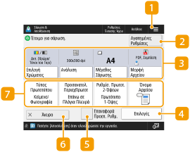 Όταν πατήσετε <Σάρωση & Αποθήκευση> στην οθόνη <Αρχική>, και έπειτα πατήσετε <Δίκτυο> ή <Μέσο Μνήμης> για να σαρώσετε τα πρωτότυπα, εμφανίζεται η ακόλουθη οθόνη ρυθμίσεων.