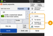 Primer: Zaslon z osnovnimi funkcijami kopiranja