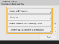 Spremenite lahko gumbe za nastavitve na zaslonih z osnovnimi funkcijami (za kopiranje, pošiljanje faksov in optično branje). Prav tako lahko prikažete različen zaslon z osnovnimi funkcijami, ki je prilagojen posameznemu prijavljenemu uporabniku.