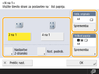 Izberite način razporeditve strani ter izberite velikost izvirnika in velikost papirja za kopiranje.