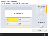 Izberite gumb od <S1> do <S4> in pritisnite <Reg./Sprem.>.