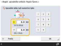 Vnesite dolžino strani <X> in strani <Y>. Pritisnite <X> ali <Y>, da s številskimi tipkami vnesete dolžino obeh stranic.