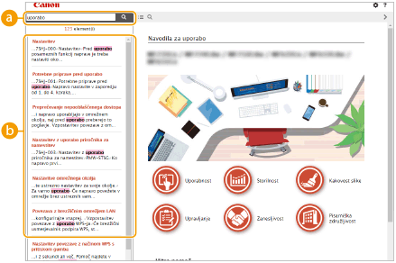 Kliknite za prikaz navodil za pregledovanje priročnika Navodila za uporabo, navodil za iskanje in drugih informacij.