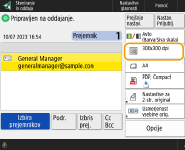 Če želite po optičnem branju izbrati prejemnika na zaslonu <Hitro izbiranje>, nastavite <Hitro izbiranje> za <Privzeti zaslon>. Delo, potrebno za pošiljanje optično prebranih dokumentov istemu prejemniku, je mogoče zmanjšati. <Privzeti zaslon>