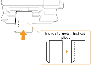 Închideţi clapetele şi încărcaţi plicurile astfel încât clapetele să fie pe partea stângă.