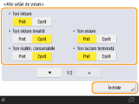 Chiar dacă tonul de intrare este setat la <Oprit>, tonul de intrare va fi emis când sosește un fax în timpul modului de hibernare, dacă consumul de energie din timpul modului de hibernare este setat la „mic”. <Utilizare energie în modul hibernare>