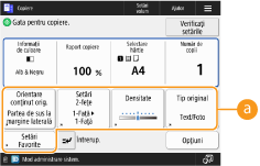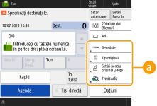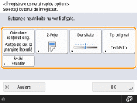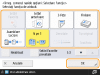 Înregistrarea în <Setări Favorite>În <Setări Favorite> puteți înregistra procedurile utilizate frecvent pentru copiere, precum și destinațiile și setările specificate frecvent pentru scanare. Pentru mai multe informații, consultați Înregistrarea unei combinații de funcții utilizate frecvent.