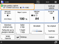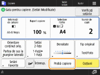 În funcție de numărul de copii și de setări, este afișată opțiunea <Probă copiere> pentru a verifica rezultatul copierii prin imprimarea unei probe de copiere. Verificarea rezultatelor copierii