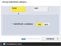 Dacă selectați <Pornit> pentru <Autentificare cu tastatura>, apăsați <Următorul>.