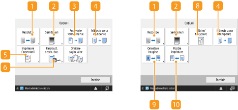 Consultați funcția <Copiere> pentru detalii, care variază de la o funcție la alta.