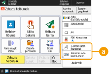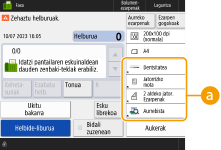 Aldatu egin ditzakezu oinarrizko eginbideen pantailetan (kopiatze, fax eta eskaneatzeko) bistaratutako ezarpen-botoiak beste ezarpen-botoi batzuen bidez <Aukerak>-(e)n. Sarritan erabilitako ezarpen-botoiak oinarrizko eginbideen pantailan jarriz, eraginkortasun handiagoz erabil ditzakezu funtzioak. Horretaz gain, autentifikazio pertsonaleko kudeaketarekin saioa hasiz oinarrizko eginbideen pantaila desberdina bistara dezakezu, pertsonalizatua erabiltzaile bakoitzarentzat.