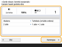 Sakatu <Kopiatu>  kopiatze-ezarpenak zehazteko. <Etxea> pantaila