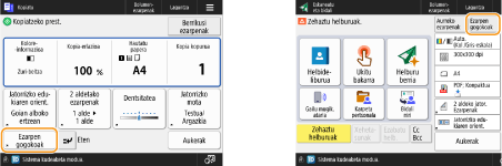 Aldatu egin dezakezu oinarrizko eginbideen pantailetan bistaratzen diren ezarpen-botoiak (kopiatu, faxak bidali eta eskaneatzeko). Horretaz gain, pertsonalizatutako oinarrizko eginbideen pantaila desberdina bistara dezakezu saioa hasitako erabiltzaile bakoitzarentzat.
