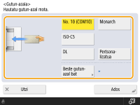 Pertsonalizatutako gutun-azal tamaina erregistratzeko, sakatu <Pertsonalizatua>