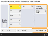 Maiz erabiltzen duzun papera <S1> botoitik <S4> botoira erregistratzen baduzu, ukitu batean berreskura dezakezu. Tamaina libreko papera erregistratzea (Paper-tamaina pertsonalizatua)