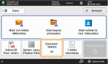 Eskaneatze eta bidaltze erraza pantailak botoiak eskaintzeko ditu oinarrizko ezarpenak erraz konfiguratzeko, hala nola helmuga eta kolore modua.