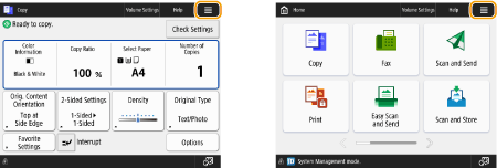 Press displayed on the <Home> screen and the Basic Features screen to customize the screen such as rearranging buttons or creating a shortcut key. Customizing the Touch Panel Display![]() You can change settings regarding the screen display, such as which screen appears immediately after turning ON the machine, and whether the message appears for remaining paper and toner. <Display Settings> You can set the screen to be displayed when a certain amount of time has passed without operation. <Function After Auto Reset> |