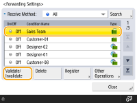 ![]() | You can set to forward received documents to specified destinations. Fax numbers as well as e-mail addresses and shared folders in computers can be specified as forwarding destinations. |