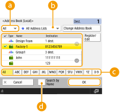<Register New Destination>, <Details/Edit>, and <Delete> in <Register/Edit> on the Address Book (Local) screen can be used to register new destinations, check details, and edit/delete destinations. To use the Remote Address Book, it is necessary to configure the server machine settings. Set to open the Remote Address Book externally on the server machine. |