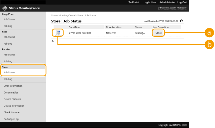 [Job Status] under [Store]