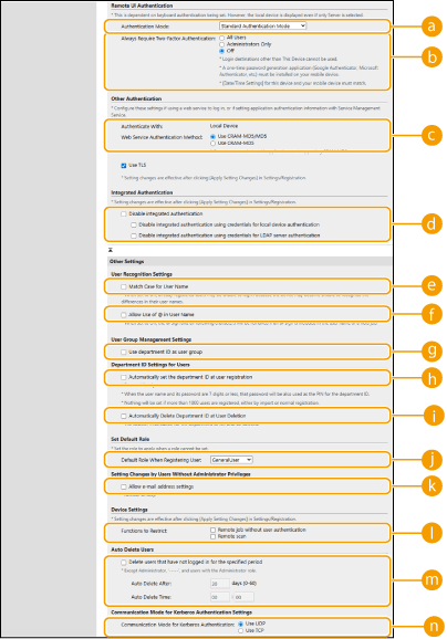 Authentication Device). Note that the authentication devices need to be set up before configuring the settings below.
