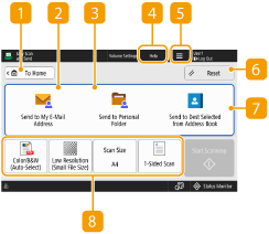 This area displays the status of settings such as the color mode and scan size. To correctly scan the original, make sure to confirm the settings. To change the settings, press the desired button.