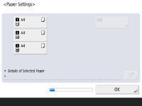 Check that the paper loaded in the paper source is specified correctly. ![]() ![]() If the paper sizes are correct, press <OK>. For information on the screen and the instructions on how to change the settings, see Specifying Paper Size and Type in the Paper Drawer. If you are not logged in as an administrator, proceed to Step 10. | |