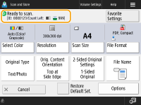 When you press <Scan and Store> on the <Home> screen, and then press <Network> or <Memory Media> to scan originals, the following setting screen is displayed.