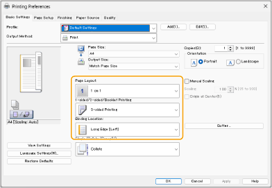3 | While checking the print preview, set [Page Layout] [Page Order] [1-sided/2-sided/Booklet Printing] [Binding Location]. |