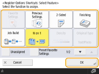 For the Copy function, you can register the configured favorite settings as a shortcut from <Preset Favorite Settings>.