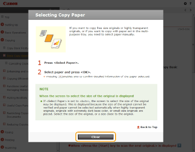 When you click the icon, the current page may go dark and a pop-up window may appear. To return to the page, click [Close] in the pop-up window.