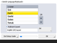 Select the language to be displayed on the screens. Depending on the language, you can change the layout of the keyboard that is displayed to enter characters. ![]() ![]() Select the language, and press <OK>. To change the keyboard layout, press <Set>, select the keyboard layout, and press <OK>. Displaying the button for switching languages will be convenient for frequent language switching. Switching the Displayed Language | |