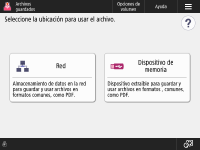 Pantalla de selección de almacenamiento