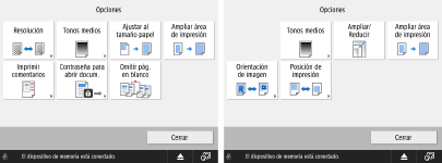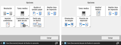 Opciones de la pantalla de configuración de la impresión