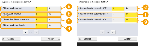 Pulse <Preferencias> <Red> <Opciones de TCP/IP> <Opciones de IPv4> u <Opciones de IPv6> <Opciones de configuración de DHCP>.