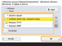Sélectionnez les réglages à enregistrer sous forme de raccourcis, puis appuyez sur <OK>.