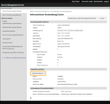 Klicken Sie auf [Lizenzverwaltung], und führen Sie den beabsichtigten Vorgang durch.