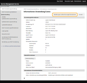 [Nicht benötigt] | Sie können die MEAP-Anwendung verwenden, auch wenn Sie keine Lizenzdatei haben. |