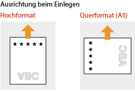 In diesem Abschnitt wird erläutert, wie Sie bereits bedrucktes Papier in korrekter Ausrichtung einlegen. Eine Erläuterung der allgemeinen Schritte zum Einlegen von Papier in die Papierkassette bzw. das Mehrzweckfach finden Sie unter Grundlegende Papiereinlegemethode. In diesem Abschnitt wird erläutert, wie Sie bereits bedrucktes Papier beim einseitigen Kopieren oder Drucken einlegen müssen. Wenn auf bereits bedrucktes Papier doppelseitig kopiert oder gedruckt werden soll, legen Sie das Papier genau umgekehrt zu den in diesem Abschnitt enthaltenen Angaben zu der Papierausrichtung ein. Um sicherzustellen, dass die Seiten unabhängig vom einseitigen oder doppelseitigen Druck auf der richtigen Seite des vorgedruckten Papiers gedruckt werden, können Sie die folgenden Einstellungsmethoden verwenden. Bei Angabe des Papiertyps vor dem jeweiligen Druckvorgang: Legen Sie den mit "Vorgedrucktes Papier" registrierten Papiertyp ein, der auf <Ein> unter <Einstellungen Verwaltung Papiertyp> gesetzt ist, geben Sie dann diesen Papiertyp an, und führen Sie anschließend den Druck aus. Bei Angabe der Papierzufuhr vor dem jeweiligen Druckvorgang: Legen Sie Papier in die Papierzufuhr ein, für welche die <Papierzufuhrmethode schalten> auf <Vorrang Druckseite> gesetzt ist, geben Sie dann diese Papierzufuhr an, und führen Sie anschließend den Druck aus. Richtige Einlegeweise für vorgedrucktes Papier, wenn "Vorgedrucktes Papier" auf <Ein> unter <Einstellungen Verwaltung Papiertyp> oder <Papierzufuhrmethode schalten> auf <Vorrang Druckseite> gesetzt ist Papierkassette: die Seite mit dem Logo nach oben Andere Papierzufuhr als Papierkassette: die Seite mit dem Logo nach unten |