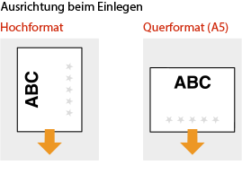 Die Einstellung <Papierzufuhrmethode schalten>Wenn Sie auf bereits bedrucktes Papier drucken, müssen Sie bei jedem Wechsel zwischen einseitigem und doppelseitigem Druck beachten, mit welcher Seite nach oben das Papier eingelegt werden muss. Wenn <Papierzufuhrmethode schalten> jedoch auf <Vorrang Druckseite> gesetzt ist, kann die Seite, die Sie zum Einlegen von bereits bedrucktem Papier für den doppelseitigen Druck verwenden, auch für den einseitigen Druck verwendet werden. Diese Einstellung ist besonders nützlich, wenn Sie häufig zwischen ein- und doppelseitigem Drucken wechseln. <Papierzufuhrmethode schalten> |