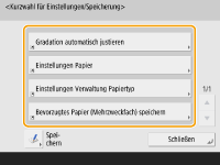 Zur einfacheren Verwendung des Bildschirms <Startseite> und des Grundfunktionsbildschirms der jeweiligen Funktion können Sie den Bildschirm durch Neuanordnung der Schaltflächen oder Anlegen von Schnellschaltflächen anpassen. Darüber hinaus können Sie effizienter arbeiten, wenn Sie häufig verwendete Funktionen als <Persönlich>/<Gemeinsam> registrieren oder die persönlichen Einstellungen verwenden, um die Betriebsumgebung an Ihre Wünsche anzupassen.