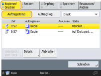 Drücken Sie <Kopieren/Drucken>  <Auftragsstatus>.